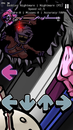FNF Baddies Nightmare is a short spin-off funkin version base on of the main mod vs Baddies, to serve as a glimpse of what the team has to offer in the future. In this nightmare version, Boyfriend and Girlfriend don't appear at all, but BF and GF will be back in the next FNF update baddies mod.