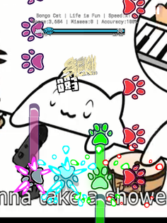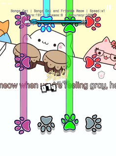 Bongo Cat appears as a white domestic cat, with pea pink paws, dotted eyes and a cat mouth, he also has an electric keyboard with Pink, Blue, Green and Red colors in each note, simulate four notes in the game. Bongo Cat is a cartoon cat that plays the Bongo drum (or sometimes the Keyboard). Originally created by StrayRogue, he appears in various remix videos and in Friday Night Funkin’ he appears in his own mod called FNF Meta Bongo Cat Door . In the mod he lives on the dead memes realm alongside other memes until Boyfriend appears. The mod only has a single week with a single song.