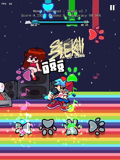 - Feel the rhythm of FNF and tap arrows to make them perfectly match and get the highest score.