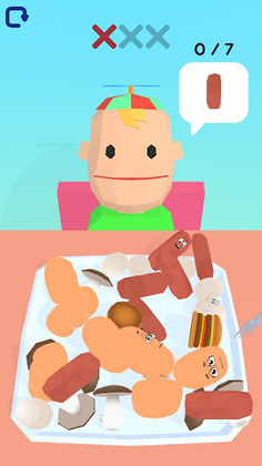 Your goal is to put in the mouth of a spoiled child only what he wants among a heap of different yummy.