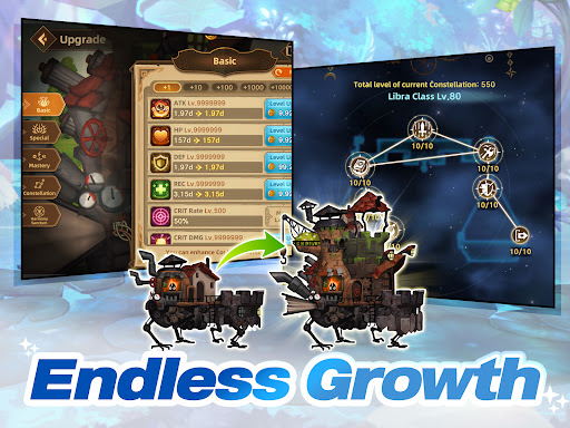 In Fortress Saga, you can strengthen your heroes and fortress 24/7 without lifting a finger, as they continuously level up and grow stronger. Engage in automatic battles and enjoy the ride while your fortress crushes your enemies, casting flashy skills, and activating synergies among heroes to become even mightier.