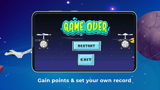 Tap to manage the space plane, avoid the enemies’ fire, aliens’ missiles, UFO and space rockets.