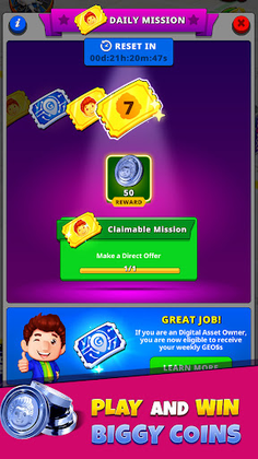 By starting an auction, you can earn additional revenue by receiving real-time bids from millions of players worldwide. Use your digital collectible and earn money while completing daily missions to grow your wealth.