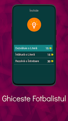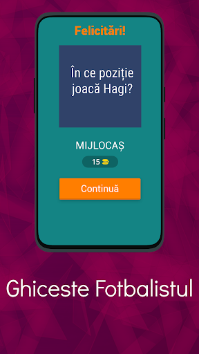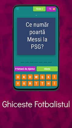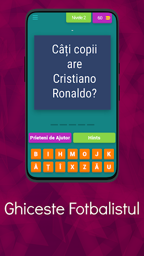 🎉 Descoperă cel mai captivant și distractiv joc de quiz și trivia despre sportul tău preferat, fotbalul ⚽. În "Ghicește Fotbalistul", poți să îți testezi cunoștințele despre fotbaliștii tăi favoriți și să te duelezi cu prietenii pentru a descoperi cine este cel mai pasionat fan al fotbalului.