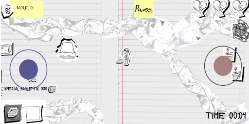 A 2D-Top Down shooter, with frenetic action and CRAZY bosses in an office notebook