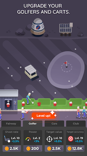 Upgrade your fairways, golfers, and vehicles to boost your profits.