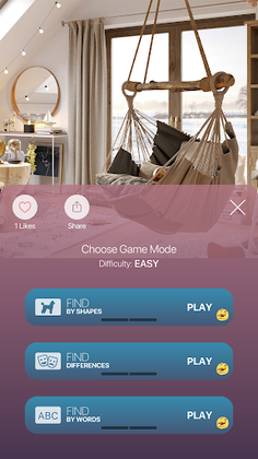 Let yourself relax, get out of your everyday routine, immerse yourself in photorealistic unique interiors, and improve your attention and observation skills.