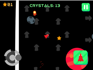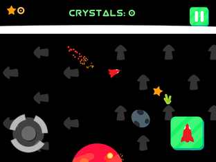 - Battle intensifying gravity by collecting crystals