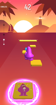Tiles Hop: Grimace Shake is a mobile game where players control a ball that bounces on a continuously scrolling platform made up of tiles.