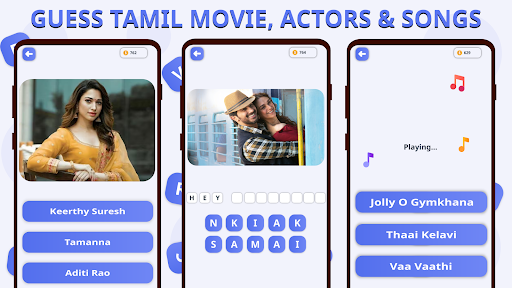 Guess movie actor, actress, Tamil songs and complete all levels.
