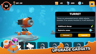 In addition to guns, gadgets will help you in fighting off hordes of robots - high-tech devices with various purposes. Combat automated turret, EMP emitter, adrenaline injection, and many others. You will not only get new gadgets, but also be able to upgrade ones you already have so that they become even more effective and more fun!