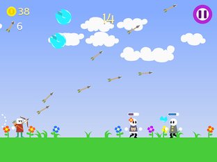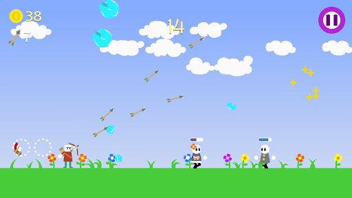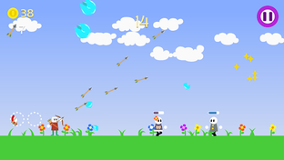 Hail Archer is a 2D arcade game where you protect scared locals by shooting hail rocks before it hits them.