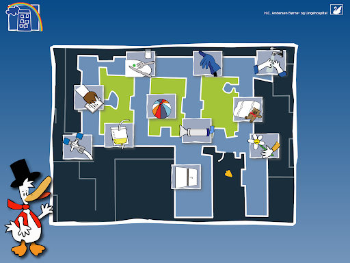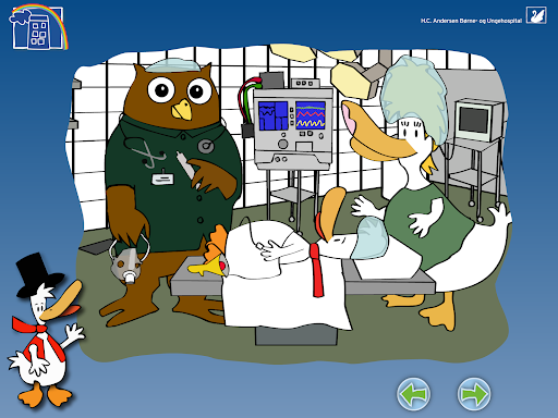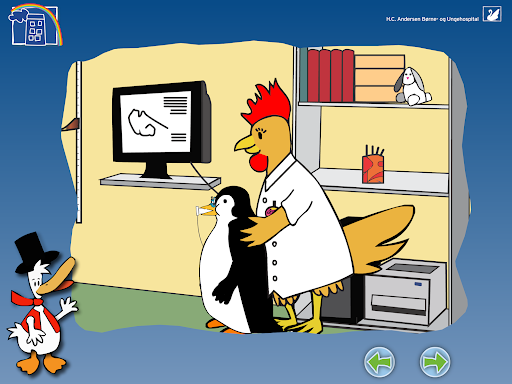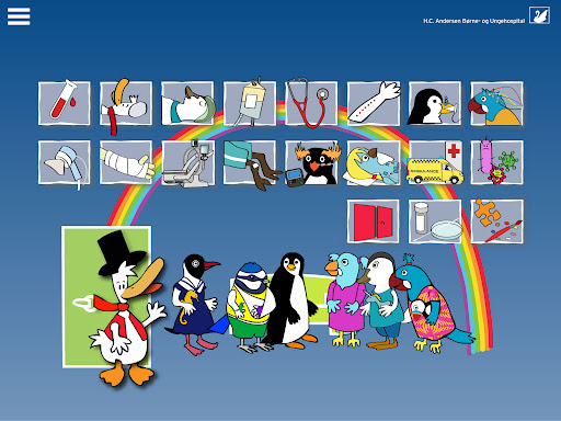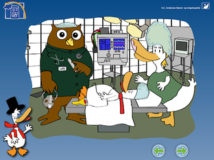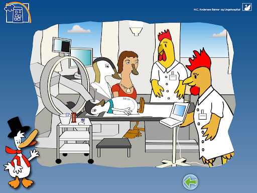 "HC And - På hospitalet" contains a wide selection of general preliminary examinations, which are used in connection with investigation and treatment. In addition, a section on "daily life" when you are admitted to a hospital. The information is spoken - by a child's voice - and animation in the genre "Learning through play with tablet/mobile phone/touch screen".