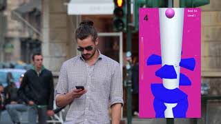 Tap and hold the screen to rotate the helix and move the ball left or right. When the ball hits a platform, it changes color to match the platform.