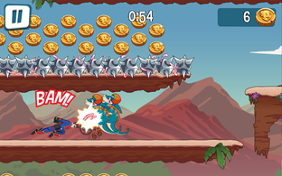 The notorious Time Jerker and his malicious cronies have broken free and escaped through time, and it's up to you to stop them. As you join forces with Henry Danger, Kid Danger, and Captain Man, you must collect as much coinage as possible while sliding, jumping, diving, and even punching giant popcorn monsters in this non-stop dash to save the day!