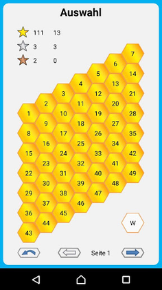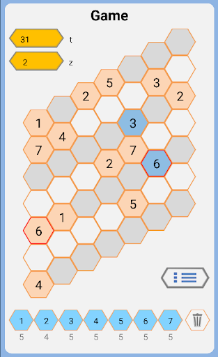 But our playing board consists of hexagons: 7 rows and 7 columns have to be filled with the number tiles 1 to 7. Hundreds of tasks are waiting for you. Addtionally, you get a new exciting weekly task. Fight for gold, silver and bronze. Try to fill the playing board fast and correctly - there are several solutions. A whole new fun is waiting for you. A whole new number puzzle. This brain teaser is a challenge.