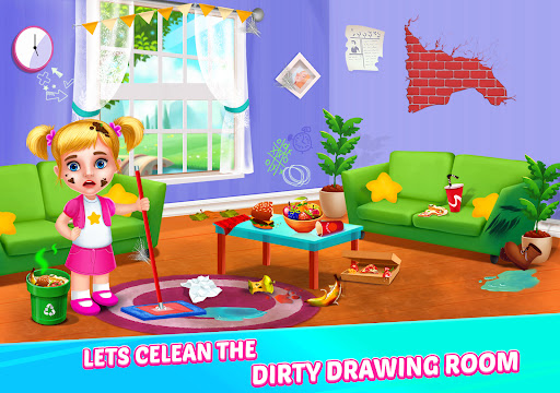 Clean up the drawing room, kitchen, toilet, bathroom, fix the cycle, clean the garden, pet house, and swimming pool. Play small puzzle game while cleaning your room. Have tons of fun playing in the playground and house cleaning games! Learn how to clean up your room, do laundry, clean the bathroom and wash the dishes.