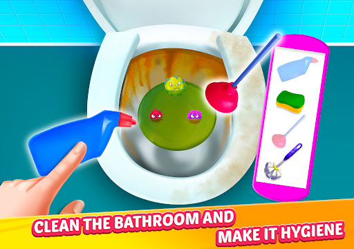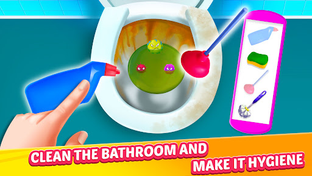 Bathroom Cleaning: You have to pay attention to the instructions. First, you have to repair the sink, it has a problem and all water is on the floor. You have to unplug the sink and repair the water tap. After that, clean all the stains.