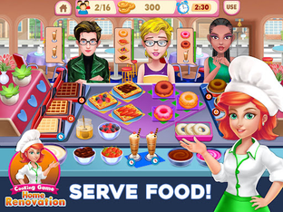 Explore yummy and tasty recipes. Buy and upgrade new cooking equipment and appliances to expand your kitchen and decorate you dream home. Do makeover, renovate and decorate home and give best look. Tap-Cook-Serve on time to make customers happy and earn money from that, then returns to become an interior design professional. From starting as a breakfast restaurant cook to becoming a fine dining restaurant head chef, travel on a cooking voyage around the world and satisfy your craze for cooking sweet and build your dream house like sweet home forever. Visit world to learn distinct cuisines and experience the madness of breakfast, lunch and dinner rush fever & frenzy.