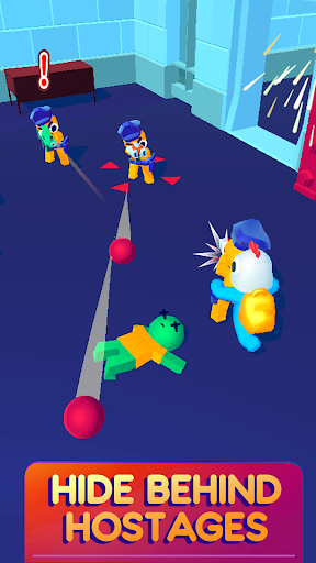 Take advantages of the scared hostages and use them as human shield to scape with the money from a crazy money heist