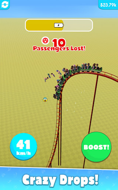 Load up your train, start tapping, and give your hyper roller coaster passengers the theme park ride of their (fleeting) lives! People fly out of the train - lose money. People stay in the train, more money!