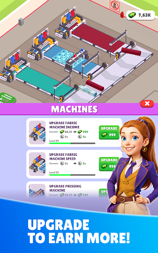 Add new fabric machines, upgrade your machines to create stunning patterns and add tailors to make clothes from fabrics! Your customers are waiting for you to purchase wonderfully designed clothes!