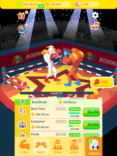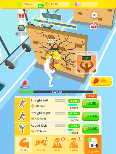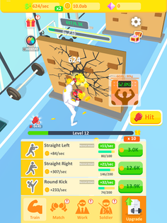 No excuse to be idle! Level up and fill those progress bars in this boxing simulator game to advance to the next day with punching, smashing the wall, equipment training, and more. Try on a new boxer in this boxing simulator!