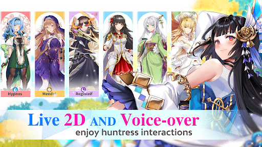 Collect, enhance, and socialize with huntresses in Idle Huntress, an isekai JRPG mobile game featuring live 2D graphics, idle gameplay, and fair gaming elements.