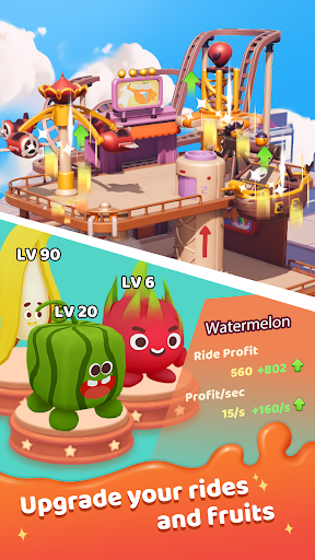 1.Funny settings, collect and synthesize your Fruit Tourists! Let them play in your amusement park, make them dizzy and ‘vomit’, then process the juice into drinks for sale! Restoring the operation of juice shops, helping people to take vitamins and earning profits at the same time.
