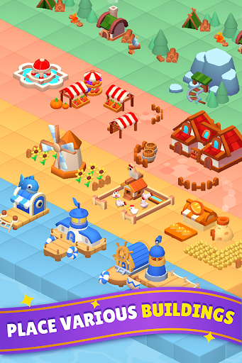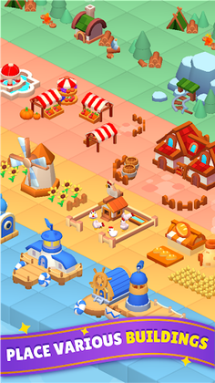 Design your dream reign territory by linking various Tiles on the land you discover. Each of them earns you Gold that you can use to make a glorious one! Once you're wealthier enough, you can construct Buildings for more earnings! When things grow busier, let your Managers collect your riches.