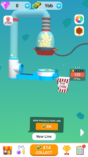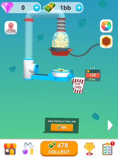 Start off small and work your way up by unlocking new production lines and creating different flavors of delicious popcorn. With simple and intuitive gameplay, you can sit back and relax while your factory does all the work for you.