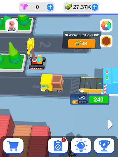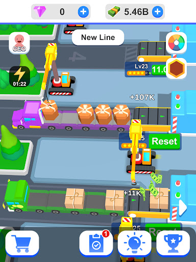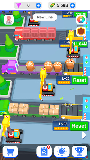 You need to transport the goods to the corresponding position. You can manually operate, or you can buy machinery and equipment to help you operate automatically. You can get income from continuous transportation. Use these income to upgrade the equipment to speed up transportation efficiency. You can also spend money to unlock the new production line to expand your business. At the same time, you can also hire some managers to help you better manage the company.