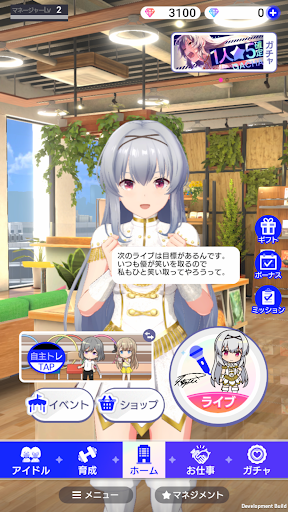 Increase your fandom by helping your idols participate in events other than live performances, such as handshake sessions, autograph sessions, Cheki (a photo with idols) sessions, and leaflet distribution. The game's automatic progression helps you support your idols' work schedule. With your contribution, aim for a successful live performance!