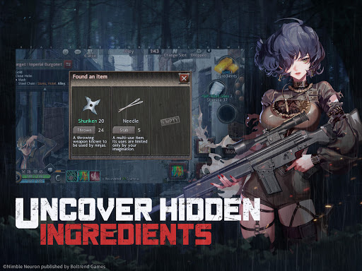 Hundreds of hidden ingredients on the battleroyale. All items such as weapons, gears, traps, foods, and drinks can be crafted during every battle.