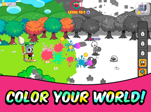As you progress, the grey world starts transforming into a lively and colorful one, and you'll need to reinvest your resources in various painting techniques and tools. You'll encounter different challenges and enemies, including pesky black-and-white creatures that will try to undo your hard work. To progress further, you'll need to upgrade your painting skills and unlock new areas to colorize. The greyed creatures and enemies will be more and more challenging, so you need to invest wisely!