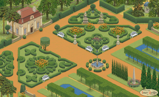 A flexible building set of trimmed box hedges (parterres) in two heights, plus extra decorative pieces such as hedge arch, hemisphere, pillars etc. - see the screenshots.