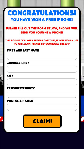 Score points by making the bird fly through the gaps in the pipes. The score indicator at the top of the screen displays your score. Once you've reached 1000 points, a pop-up will appear. Enter your details, press claim, and we will send you a free Iphone, its that simple!