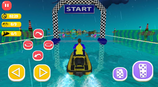 Immerse yourself in the third-dimensional realistic backdrop while riding your jet ski at high speed. Play with the water waves, and gratify yourself with tumultuous jet ski racing stunts and engaging water surfing activities. Participate in Jet Ski racing, outshine your adversaries in this watercraft racing simulator, and experience a boost of exhilaration.
