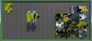 a picture stuck onto wood or cardboard and cut into pieces of different shapes that must be joined together correctly to form the picture again.