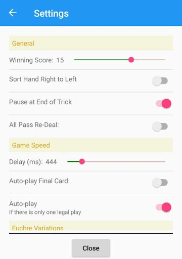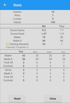 Advanced AI focuses first on bringing in new players to the game; pick up the game and just start playing. Training progresses quickly, and even the most experienced players might learn a thing or two. Each strategic decision is explained! See inside the thought process of a mature Euchre AI originally published in 1990 and updated in 2019.