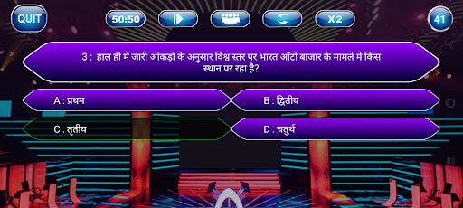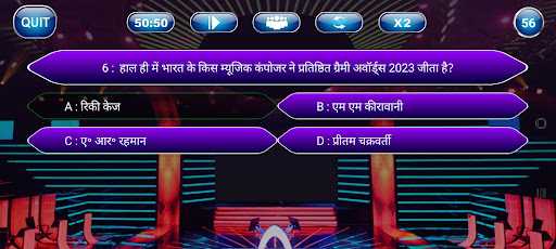 It's a trivia quiz game. We will ask you questions with four options, In which one answer is correct & three will be wrong. So you just need to give answer. If your answer is correct then you will go next level otherwise you need to start again. If your answer is wrong then don't worry we will share correct answer so you can keep learning. Our aim is improve your general knowledge. So GK in hindi is also in this game. Play kbc in english and earn knowledge.