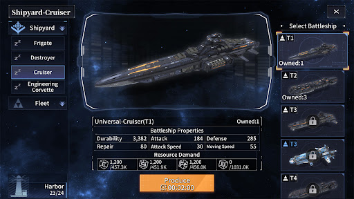 There are four ship types: Frigate, Destroyer, Cruiser, and Engineering Corvette. Each ship type has its own unique abilities, such as excellent defensive ability or offensive ability, mobility, mid-combat ship maintenance, and the ability to disrupt enemies. As a Commander, you can create customized and optimized fleets by installing hundreds of available Ship Ability Modules on your ships.