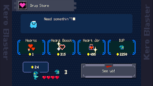 Play as a frog fighting off enemies, collecting money, and upgrading weapons to progress through stages in the unique world of Kero Blaster!