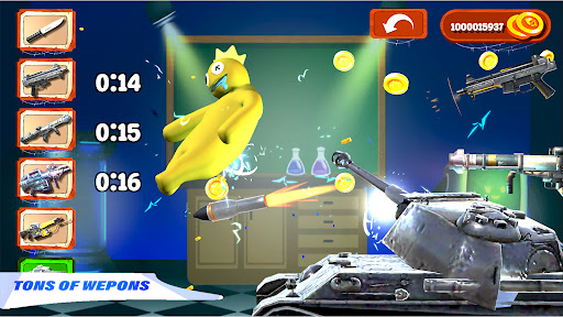 Your puppet is here! Play with puppets in this kick the rainbow game, and use all weapons to beat the rainbow! Use, exploded weapons, AR guns, tanks, and many other guns which you can use to hit the buddy forever! You have a virtually limitless arsenal like knives, grenades, rockets, automatic rifles, tanks, and other weapons to cut, burn, and blow up the rainbow buddy. Enjoy the best mini-game ever which you have never played before. Beat the Rainbow is the perfect game for stress relief. Download now and start enjoying our Kick the buddyman game!