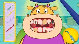 Every person knows that dentist works with problems connected with teeth. How many tooth problems do you know? Today we will learn about it. Kids Hippo Hospital explains to you, what dentist has to do. Today we will learn how to drill teeth, remove unhealthy caries, set filling, fight a bad breath, give a shot, fight bad microbes and just how to brush teeth. Don’t think that setting a filling is such an easy task. There are a lot of preparatory and exciting tasks before. Our kids Hippo Hospital will tell you about it and about many other interesting facts. Help Hippo to become a dentist. Have fun and learn a bit, playing our kids educational games.