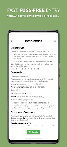 The app has everything you could wish for: gazillions of puzzles at all sizes and levels, automatic notes, drag copy & repeat entries, sum calculator, cage summer, progress validator, and hints.