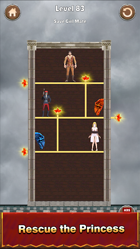 To pull the pin in the pin rescue game Kingdom Defense - Pull The Pin, solve brain-damaging puzzles, aid knights in destroying monsters, pin rescue the princess, and discover treasure.