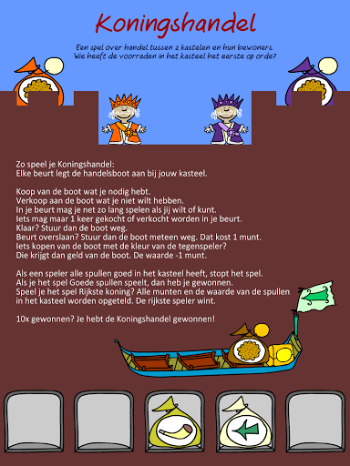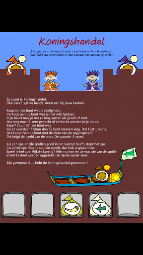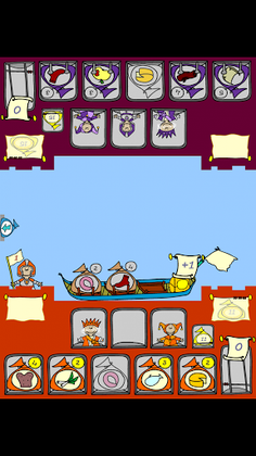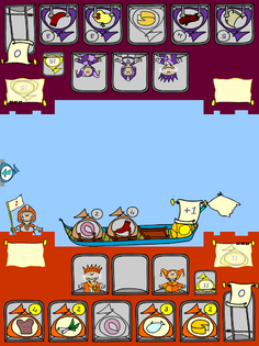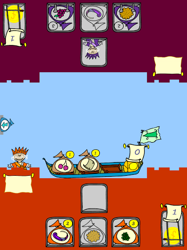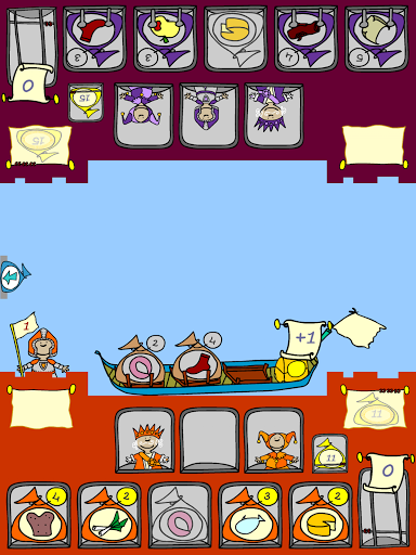 The supplies in your castle are not in order. Fortunately, the trading boat comes by so that you can buy the stuff you need. To make money and to get rid of things you don't want, you sell to the boat. You also get money if your opponent buys something from the boat you placed on it.