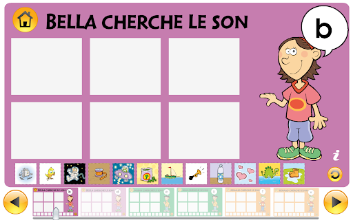 Il consiste en une suite d’exercices de reconnaissance des syllabes et s’inspire du jeu du même nom en version imprimée.