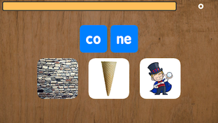Read the word divided into syllables and select the corresponding image. When you choose the correct image, you can move on to the next word.